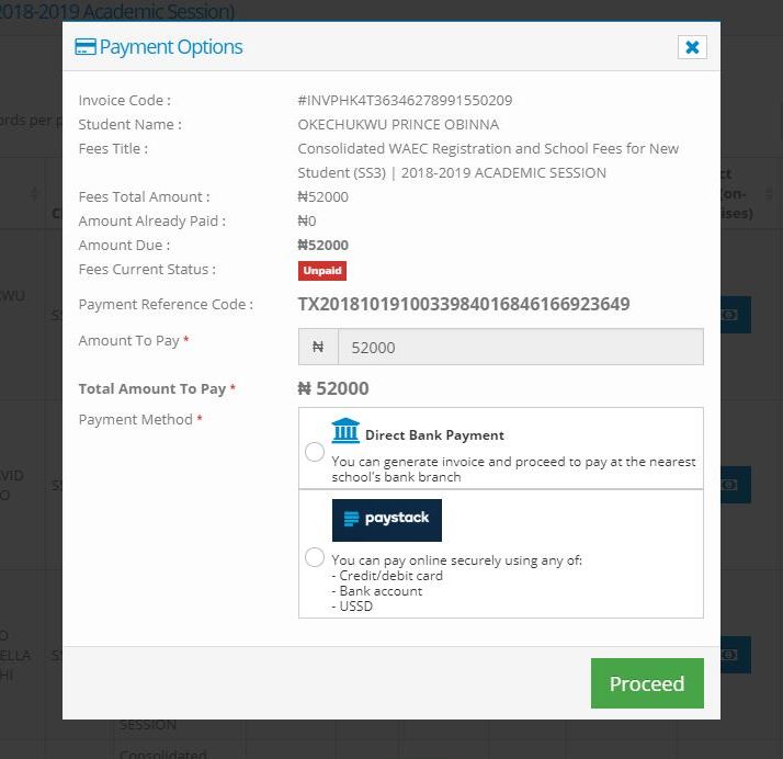 Also, payments can be made by printing pre-payment invoice from the school portal, and then proceeding to the bank to complete the payment through deposit.